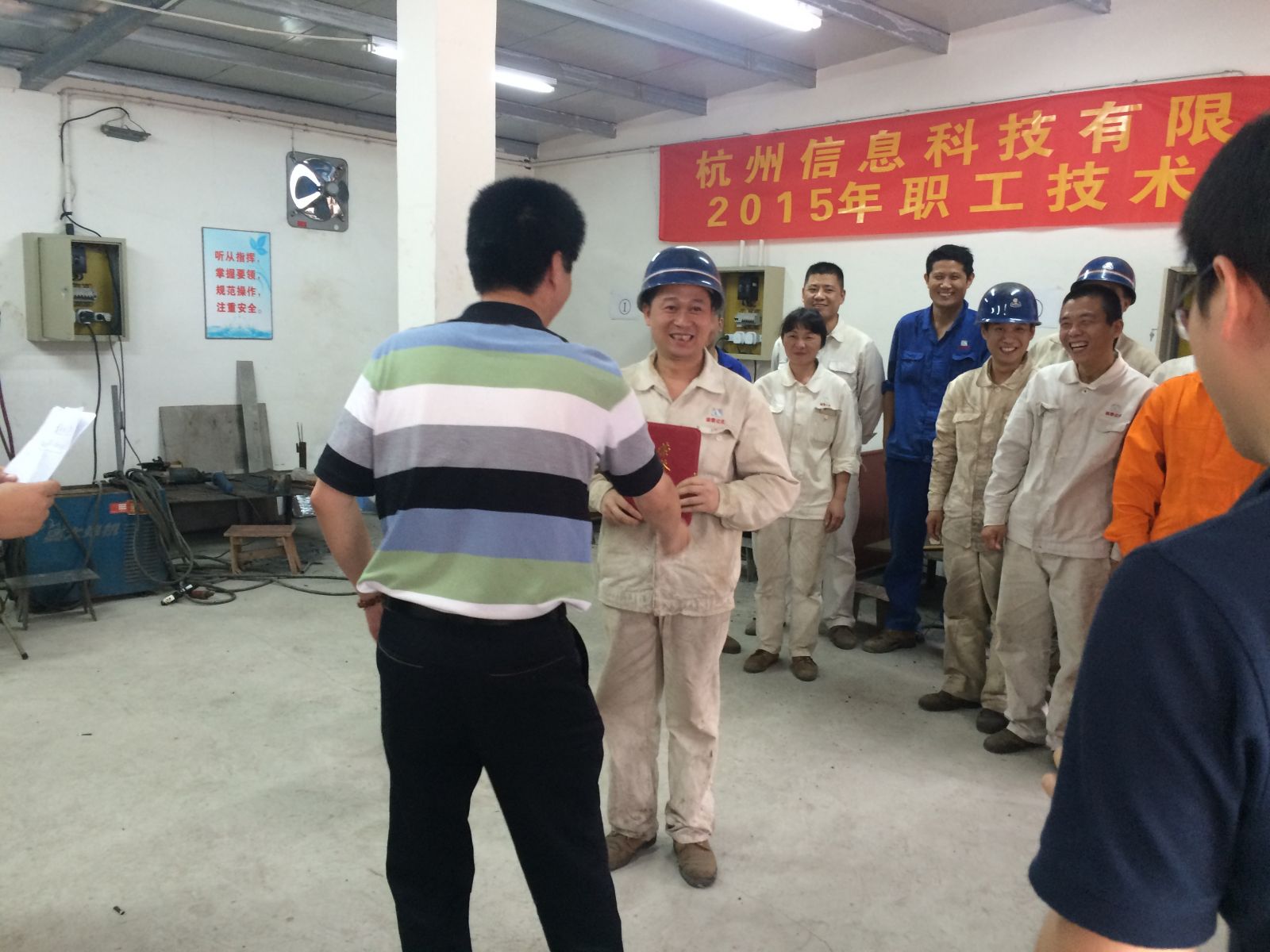 為了激發(fā)全體員工學(xué)習(xí)知識(shí)、技術(shù)的積極主動(dòng)性,形成奮發(fā)向上、爭(zhēng)創(chuàng)一流的氛圍,我公司與杭州信息科技有限公司于2015年9月28日聯(lián)合舉辦了一次電焊技能交流大賽。公司技術(shù)人員積極參與了比賽,并使出自己的真本事取得了優(yōu)異的成績(jī),展現(xiàn)了誠(chéng)泰人的風(fēng)采。公司董事長(zhǎng)親臨現(xiàn)場(chǎng)為獲獎(jiǎng)?wù)哳C發(fā)獲獎(jiǎng)證書(shū),并鼓勵(lì)各技術(shù)人員再接再厲,勇創(chuàng)佳績(jī)。