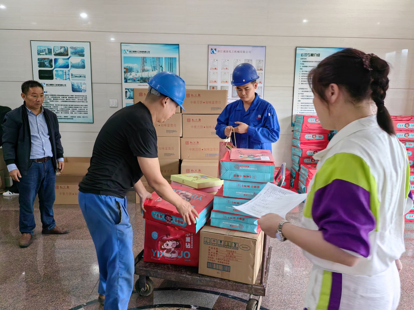 在福利發(fā)放現(xiàn)場,大家的喜悅之情溢于言表。這一份份沉甸甸的禮盒,寄托著真切關(guān)懷,飽含著真情慰問,代表著美好祝愿,傳遞企業(yè)對大家的關(guān)懷。2023年,公司取得的每一份成就離不開大家的共同努力,離不開每一位誠泰家人的辛勤付出。在此,公司工會衷心地祝愿所有家人們:中秋節(jié)快樂!闔家團(tuán)圓!萬事如意!